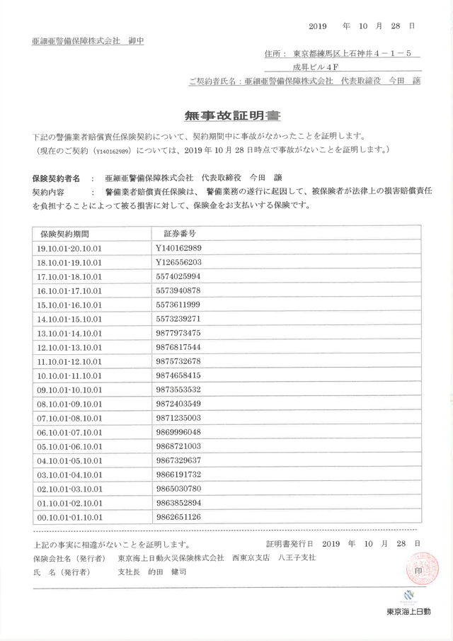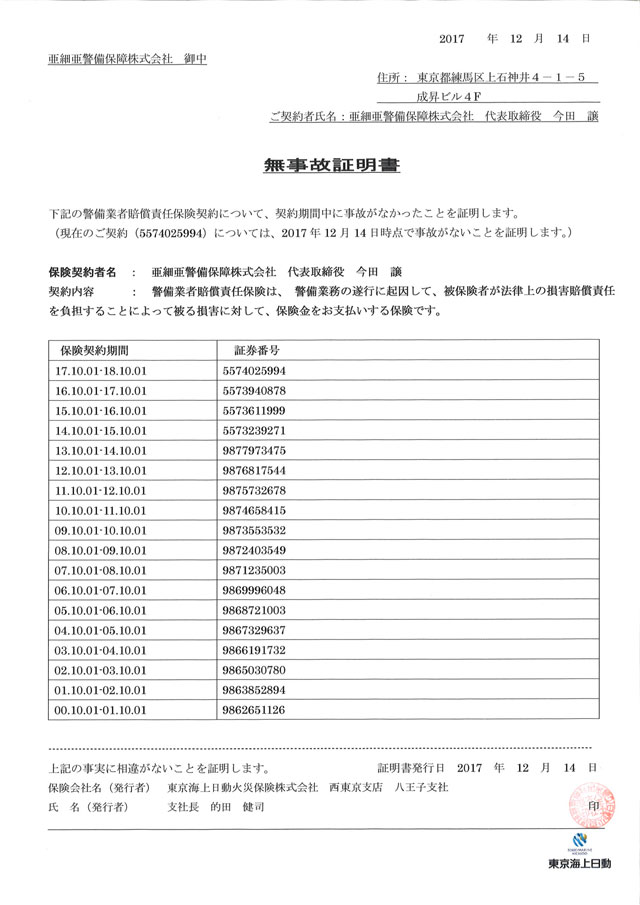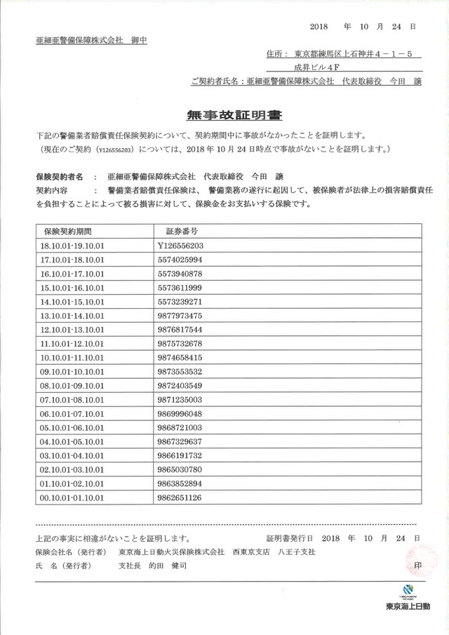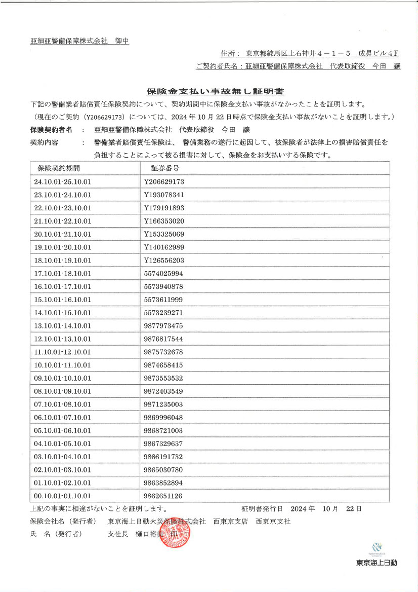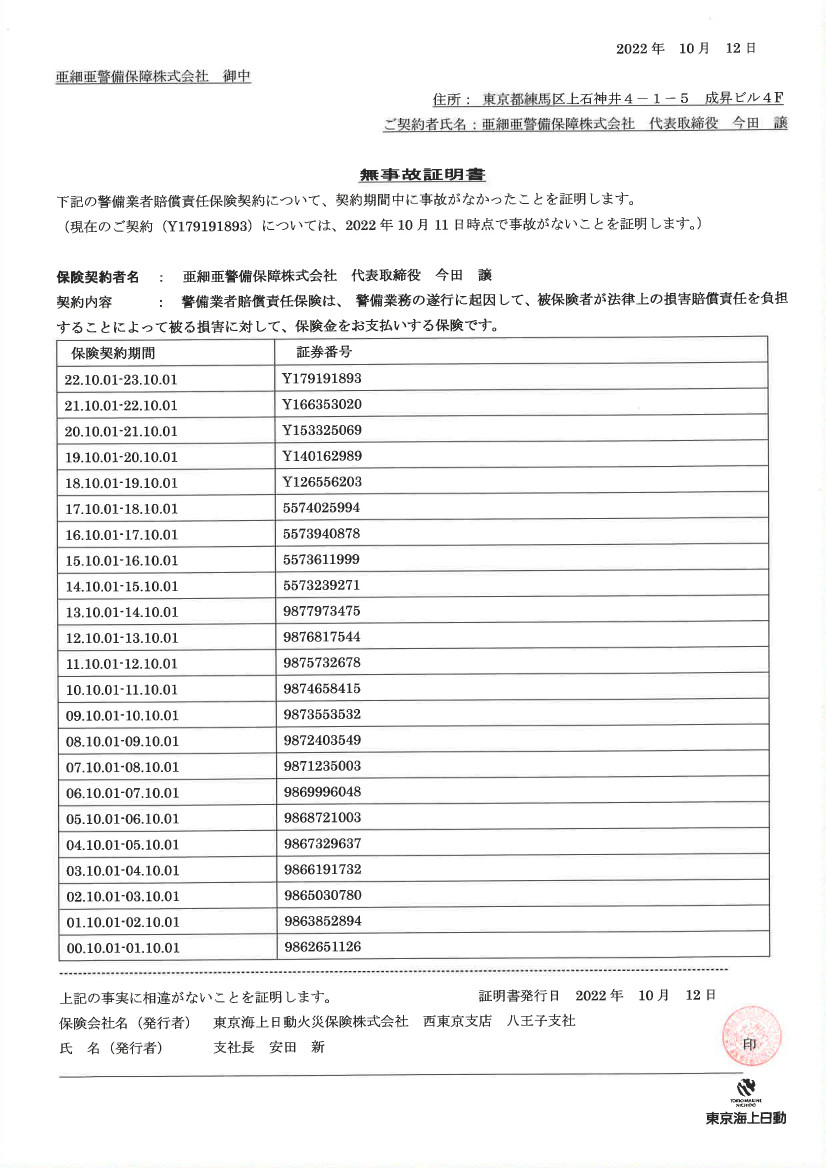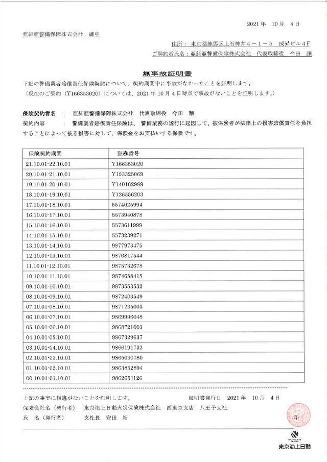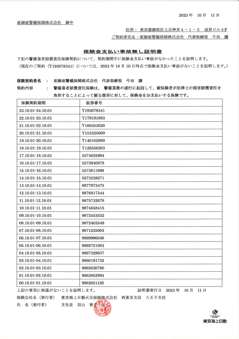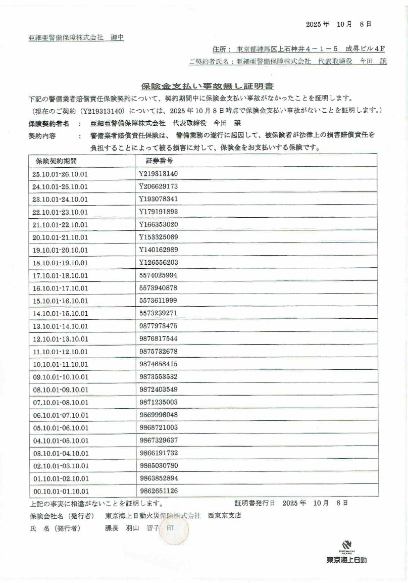 全警備スタッフ(希望しない者を除く)のインフルエンザ予防接種を会社負担で実施しました。