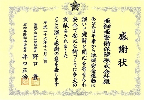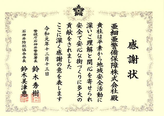 石神井警察署より日頃の社会貢献に対して表彰されました。